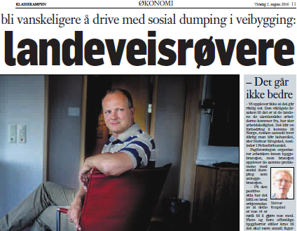 Utenom den rene kriminaliteten, som ofte er godt skjult, er den største utfordringen at enkelte selskaper ansetter utlendinger lokalt på byggestedet for å unngå kostnader til kost og losji, forteller Krogstad til Klassekampen.
