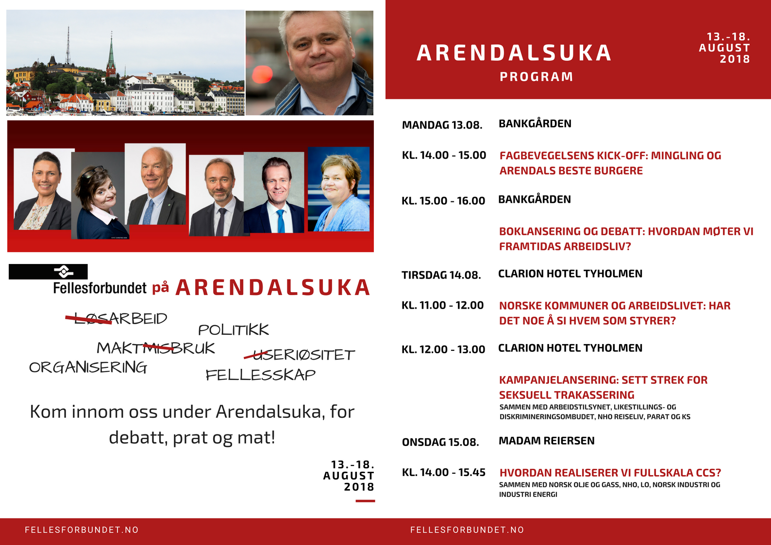 Under årets politiske festival i Arendal samles politikere, fagbevegelse og andre aktører innen norsk arbeidsliv på Fellesforbundets arrangementer.