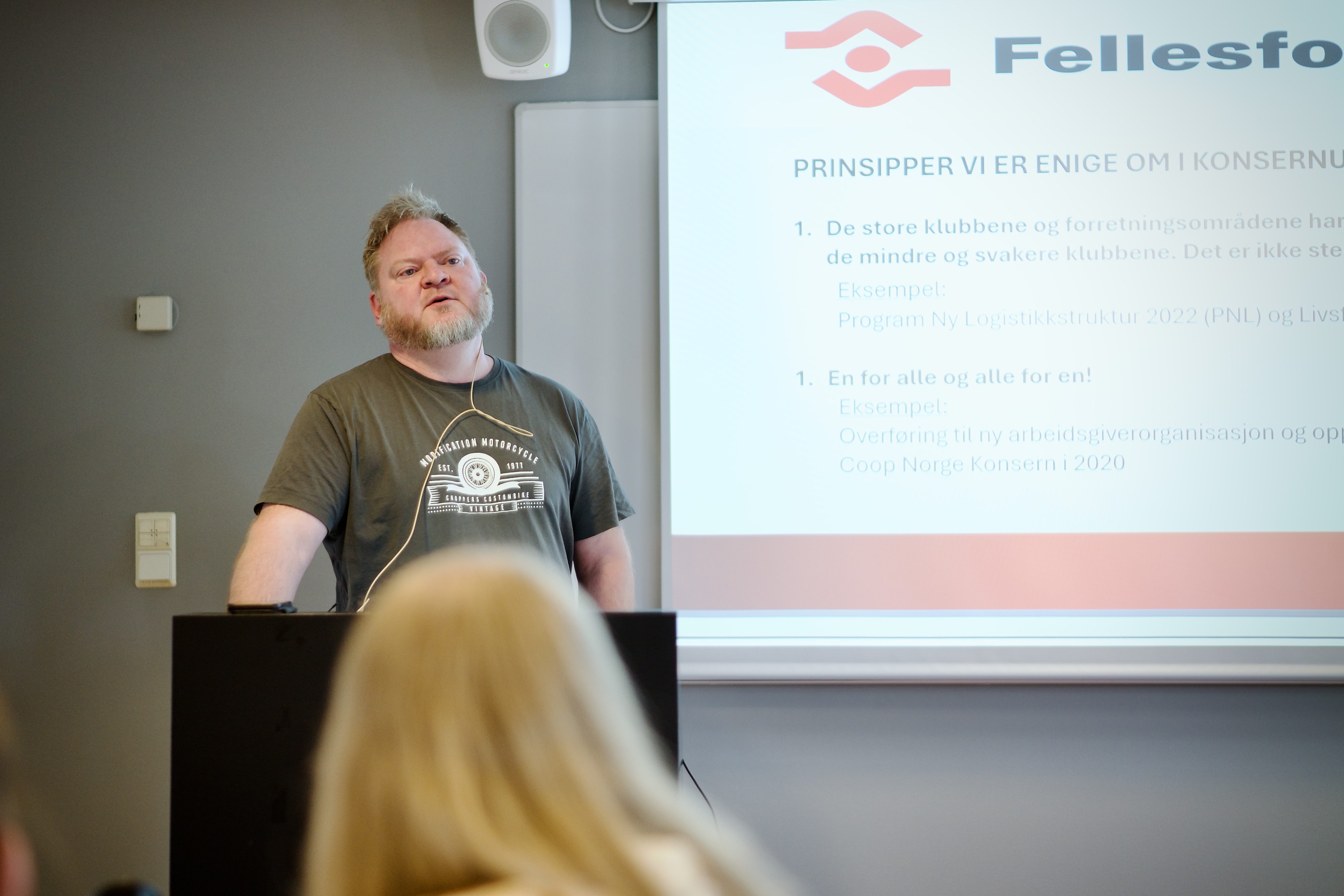 Øystein Berg, hovedtillitsvalgt fra Coop Norges logistikklager viste at medbestemmelse og dialog er mulig. Han viste hvordan en god konsernavtale både kan sikre medbestemmelse og virke konfliktdempende.